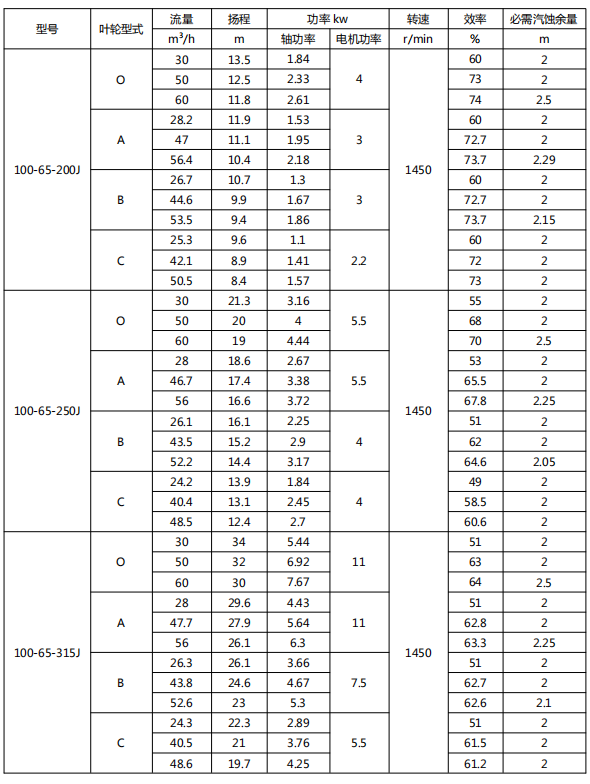 性能范围进口直径: 50~400mm; 流量 Q: 2.7-1920 m3/h; 扬程 H: 2.7-145 m; 功率 P: 1.1-280kw。..